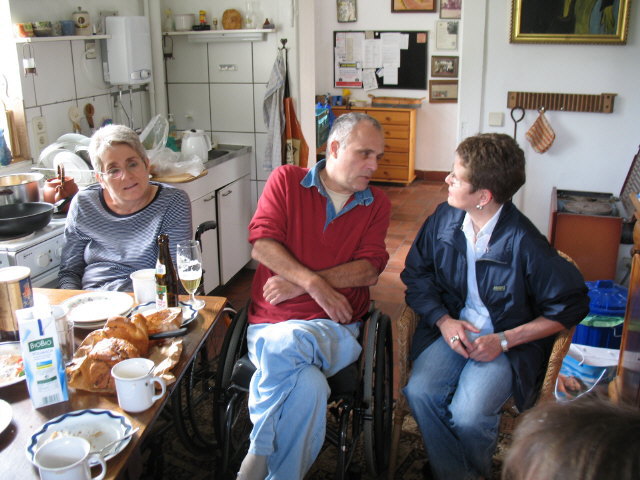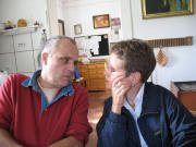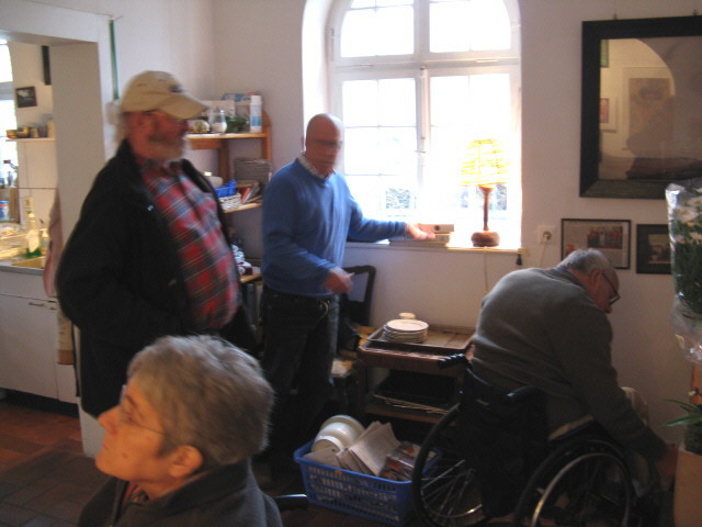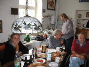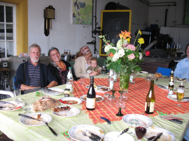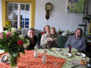 Zuerst Regen und dann ab 16 Uhr doch schönes Sonnenwetter, so konnte auch der Grill draußen im Garten von Björn gut bedient werden. Gemütlich wie immer - besonders als die Sonne durch das Rundtor in die Zwischenhalle schien. Neuigkeiten: Im Garten am Teich schnattern nun zwei Enten. Und Christa hat - man glaubt es kaum - tatsächlich eine eMail-Adresse: christa.djuga at web.de