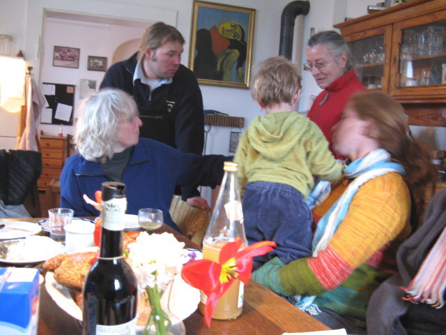 Schönes Vorfrühlingswetter. Volle Küche. Kuchen und kaltes Buffet (Dank auch an die "Hausmeister's"). Im Garten beginnt es so langsam. Der Mirabellenbaum wird in der kommenden Woche wohl blühen. Alle Fische haben glücklich überwintert. Björns neuer Zaun wächst. Das wichtigste am Schluß: Nils, unser Maisbacher Nachwuchs, gedeiht prächtig (2) und wird die Renten sicher machen.