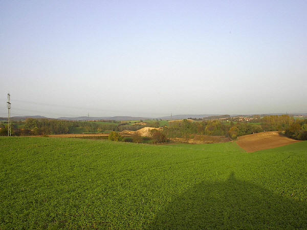 Kornbuckel aus nach Norden: Steinbruch links, Heiligenberg zwischen Maisbach