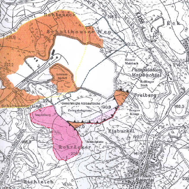jetzt aktiven Abbaugebiet östlich des Baiertaler Weges konnten wir in den