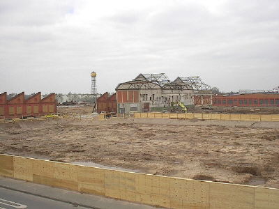 Illusion, die Fassaden der alten Fabrikhallen stehen zu lassen, fest. Wenn dann