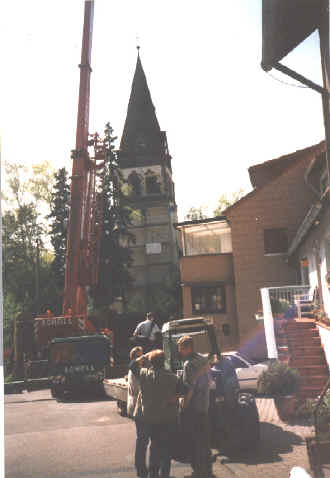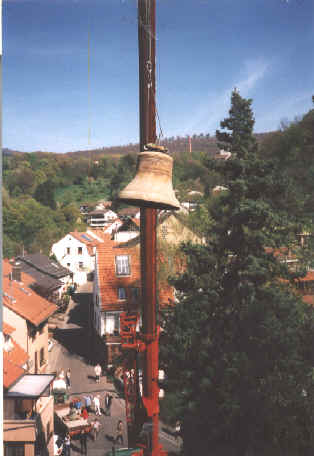 nach Osten zum Kühlen Grund (eine neue Glocke wird gerade hochgehievt)
