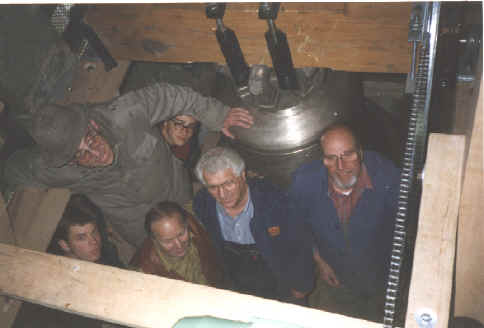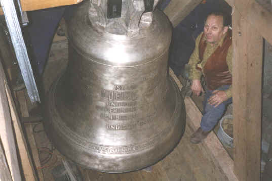 größte der neuen Glocken ist eingebaut. Inschrift: "... in